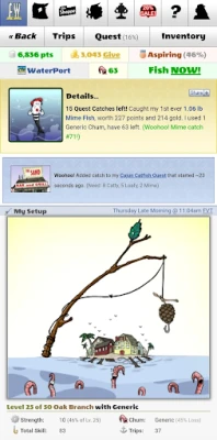 Sukelduge virtuaalsesse kalastusmaailma, kus iga viskega kaasneb uue saagi ootus! See kaasahaarav seiklus kutsub teid veetma kvaliteetaega vee ääres, püüdes kalu ning teenides väärtuslikke punkte ja kulda. Iga edukas saak aitab teil ehitada oma kalastuskarjääri, võimaldades soetada uusi ja paremaid püügivahendeid või lihvida oma oskusi. Valmistuge strateegilisteks valikuteks, sest juba mängu alguses on oluline investeerida õigetesse oskustesse, mis sillutavad teed edasistele avastustele.
