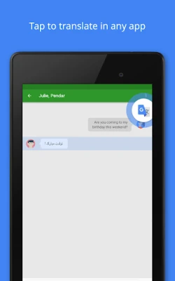 Google'i Tõlge on teie usaldusväärne partner maailma keelte avastamisel, pakkudes sujuvat suhtlust igas olukorras. Unustage keelebarjäärid, sest see intuitiivne rakendus toob tõlketeenused otse teie käeulatusse. Olgu tegemist välisriigis reisimise, uue keele õppimise või lihtsalt võõrkeelse teksti mõistmisega – Google'i Tõlge muudab keerulise lihtsaks. Kopeerige mis tahes tekst mis tahes rakendusest ning puudutage kiirelt Google'i Tõlke ikooni, et saada kohene tõlge arvukatesse keeltesse. Ja mis kõige parem, isegi ilma internetiühenduseta, toetab rakendus tõlkimist 59 keeles, tagades, et olete alati valmis.