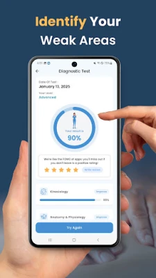 Teie edenemise jälgimiseks pakub rakendus detailset sooritusanalüüsi, mis aitab teil tuvastada oma tugevused ja nõrkused. See annab hinnangu teie tõenäosusele eksam edukalt läbida ning pakub sihipärast harjutamist, et maksimeerida teie võimalusi. Kasutage seda tööriista oma õppimisstrateegia optimeerimiseks. Mugavuse huvides on kogu sisu ja funktsioonid kättesaadavad ka võrguühenduseta, võimaldades teil õppida igal ajal ja igas kohas. Easy Prep on pühendunud sellele, et pakkuda teile parimat ettevalmistust, aidates teil MBLEx eksami edukalt sooritada ja alustada täisväärtuslikku karjääri massaaži- ja kehateraapia valdkonnas.