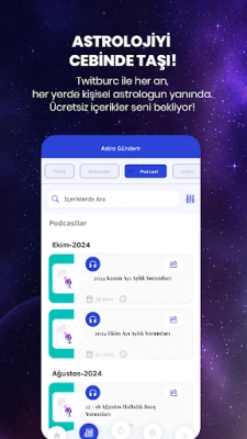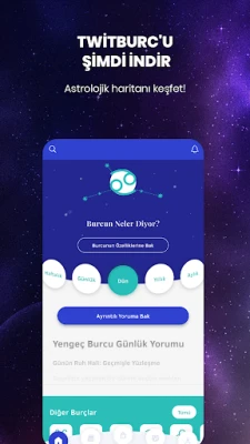 Twitburc pakub igapäevaseid, iganädalasi ja igakuiseid horoskoope. Astroloog Zeynep Turanilt saate erikommentaare, mis pakuvad rikkalikku sisu ja juhatust karjääris, armastuses ning elus. See on asendamatu tööriist igale astroloogiahuvilisele.